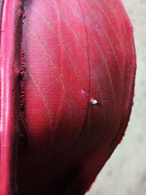 比較的簡単に穴の開いてる位置は判って、タイヤの該当するあたりをみたら・・・・