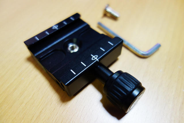 でもアルカスイス互換みたいな溝が切られてるんで、試しにTARION クイックリリースクランプっていうのを購入してみました。