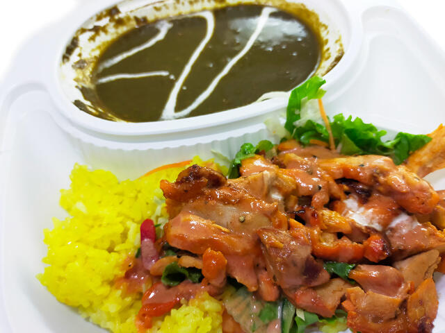 お昼はサグチキンカレーにしました。